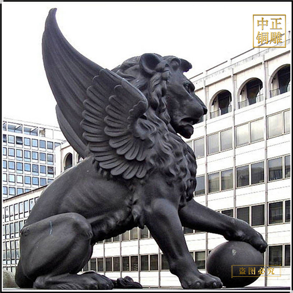 带翅膀的铜狮子雕塑