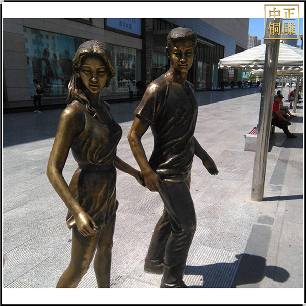 中正铜雕-步行街情侣人物铜雕塑、步行街情侣人物铜雕塑价格、步行街情侣人物铜雕塑厂家,我公司集科研、开发设计、普通铸造、一次性整体浇铸、精密铸造于一体。本公司技术力量雄厚,设备,不但重视中国青铜器原有的艺术风格,还继承了文物原有的艺术品味,在继承和发扬古老文化的同时,更深一步为新老客户定身量制各种铜制、铁制工艺品等产品,曾多次受到寺庙长老和美术学院教授的好评。