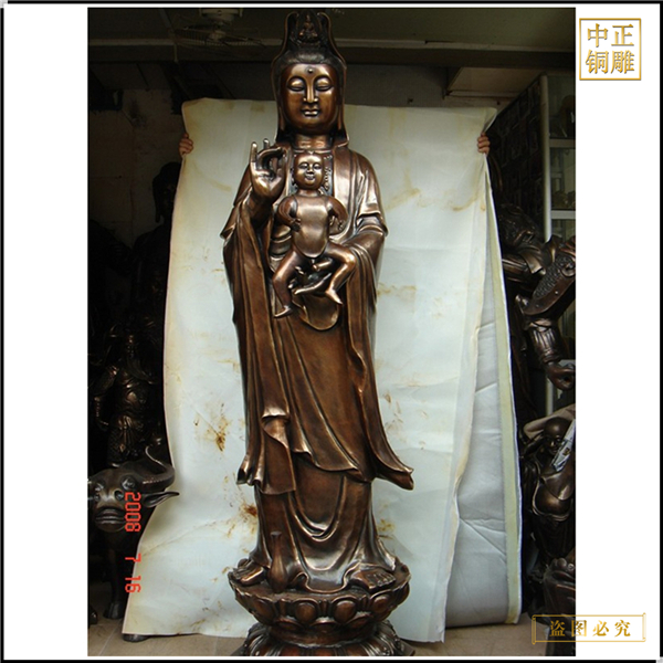中正铜雕-定制送子观音像摆件、定制送子观音像摆件价格、定制送子观音像摆件厂家,我公司集科研、开发设计、普通铸造、一次性整体浇铸、精密铸造于一体。本公司技术力量雄厚,设备,不但重视中国青铜器原有的艺术风格,还继承了文物原有的艺术品味,在继承和发扬古老文化的同时,更深一步为新老客户定身量制各种铜制、铁制工艺品等产品,曾多次受到寺庙长老和美术学院教授的好评。