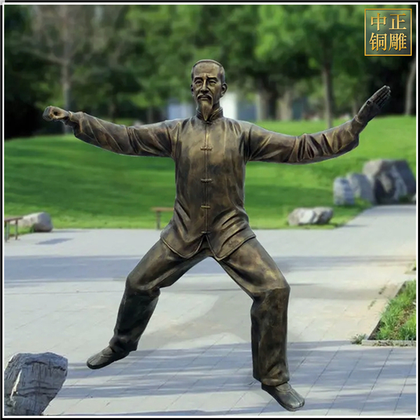中正铜雕-仿铜公园练太极人物雕塑、仿铜公园练太极人物雕塑价格、仿铜公园练太极人物雕塑厂家,我公司集科研、开发设计、普通铸造、一次性整体浇铸、精密铸造于一体。本公司技术力量雄厚,设备,不但重视中国青铜器原有的艺术风格,还继承了文物原有的艺术品味,在继承和发扬古老文化的同时,更深一步为新老客户定身量制各种铜制、铁制工艺品等产品,曾多次受到寺庙长老和美术学院教授的好评。