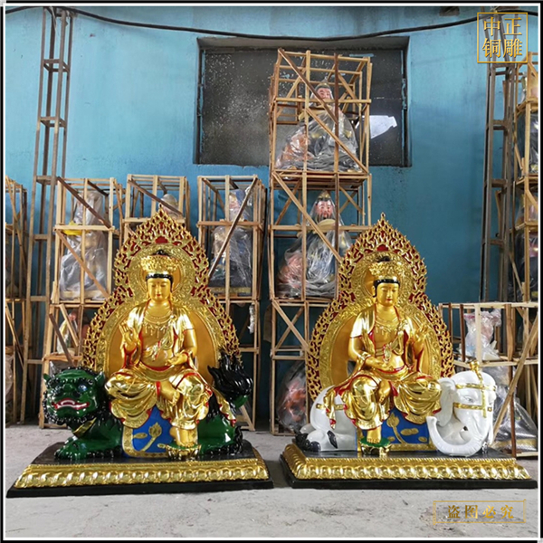 中正铜雕-2.6米文殊普贤菩萨像、2.6米文殊普贤菩萨像价格、2.6米文殊普贤菩萨像厂家,我公司集科研、开发设计、普通铸造、一次性整体浇铸、精密铸造于一体。本公司技术力量雄厚,设备,不但重视中国青铜器原有的艺术风格,还继承了文物原有的艺术品味,在继承和发扬古老文化的同时,更深一步为新老客户定身量制各种铜制、铁制工艺品等产品,曾多次受到寺庙长老和美术学院教授的好评。