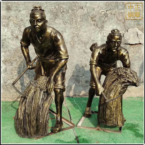 中正铜雕-割麦子人物铜雕塑、割麦子人物铜雕塑价格、割麦子人物铜雕塑厂家,我公司集科研、开发设计、普通铸造、一次性整体浇铸、精密铸造于一体。本公司技术力量雄厚,设备,不但重视中国青铜器原有的艺术风格,还继承了文物原有的艺术品味,在继承和发扬古老文化的同时,更深一步为新老客户定身量制各种铜制、铁制工艺品等产品,曾多次受到寺庙长老和美术学院教授的好评。