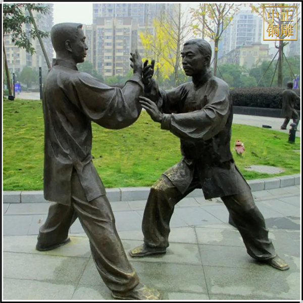 中正铜雕-园林打太极人物雕塑定制、园林打太极人物雕塑定制价格、园林打太极人物雕塑定制厂家,我公司集科研、开发设计、普通铸造、一次性整体浇铸、精密铸造于一体。本公司技术力量雄厚,设备,不但重视中国青铜器原有的艺术风格,还继承了文物原有的艺术品味,在继承和发扬古老文化的同时,更深一步为新老客户定身量制各种铜制、铁制工艺品等产品,曾多次受到寺庙长老和美术学院教授的好评。