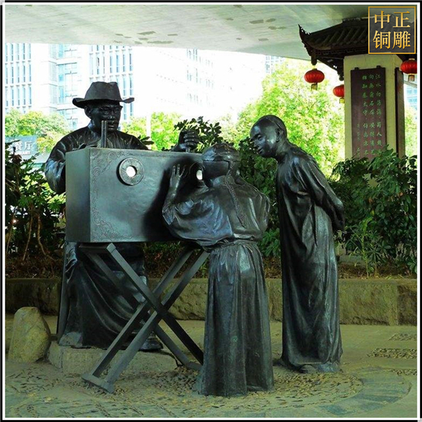 中正铜雕-古代照相民俗雕塑、古代照相民俗雕塑价格、古代照相民俗雕塑厂家,我公司实行现代化企业管理,成功导入TPS生产管理系统,形成集塑制泥塑模型、泥稿后翻制模具、翻制石膏模型、工艺师加工制作、营销为一体化作业的生产线,加上先进的铜雕加工设备,优秀的美术设计师,雕刻经验丰富的制作人员。