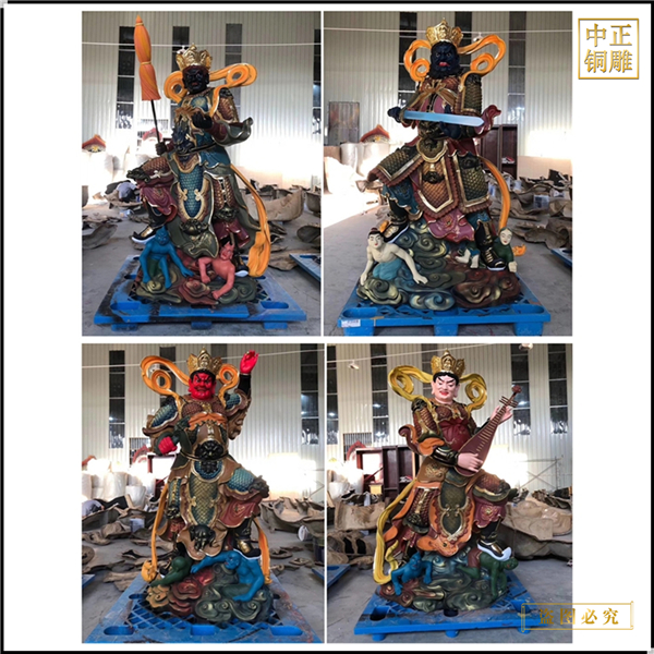 黄铜彩绘四大天王佛像