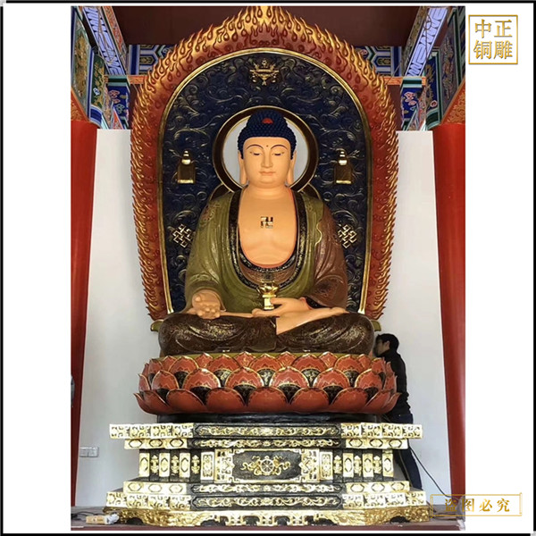 中正铜雕-彩绘释迦牟尼佛铜像铸造厂、定制彩绘释迦牟尼佛铜像铸造厂、彩绘释迦牟尼佛铜像铸造厂报价,我公司实行现代化企业管理,成功导入TPS生产管理系统,形成集塑制泥塑模型、泥稿后翻制模具、翻制石膏模型、工艺师加工制作、营销为一体化作业的生产线,加上先进的铜雕加工设备,优秀的美术设计师,雕刻经验丰富的制作人员, 造型精美,精雕细琢,深受客户的好评。